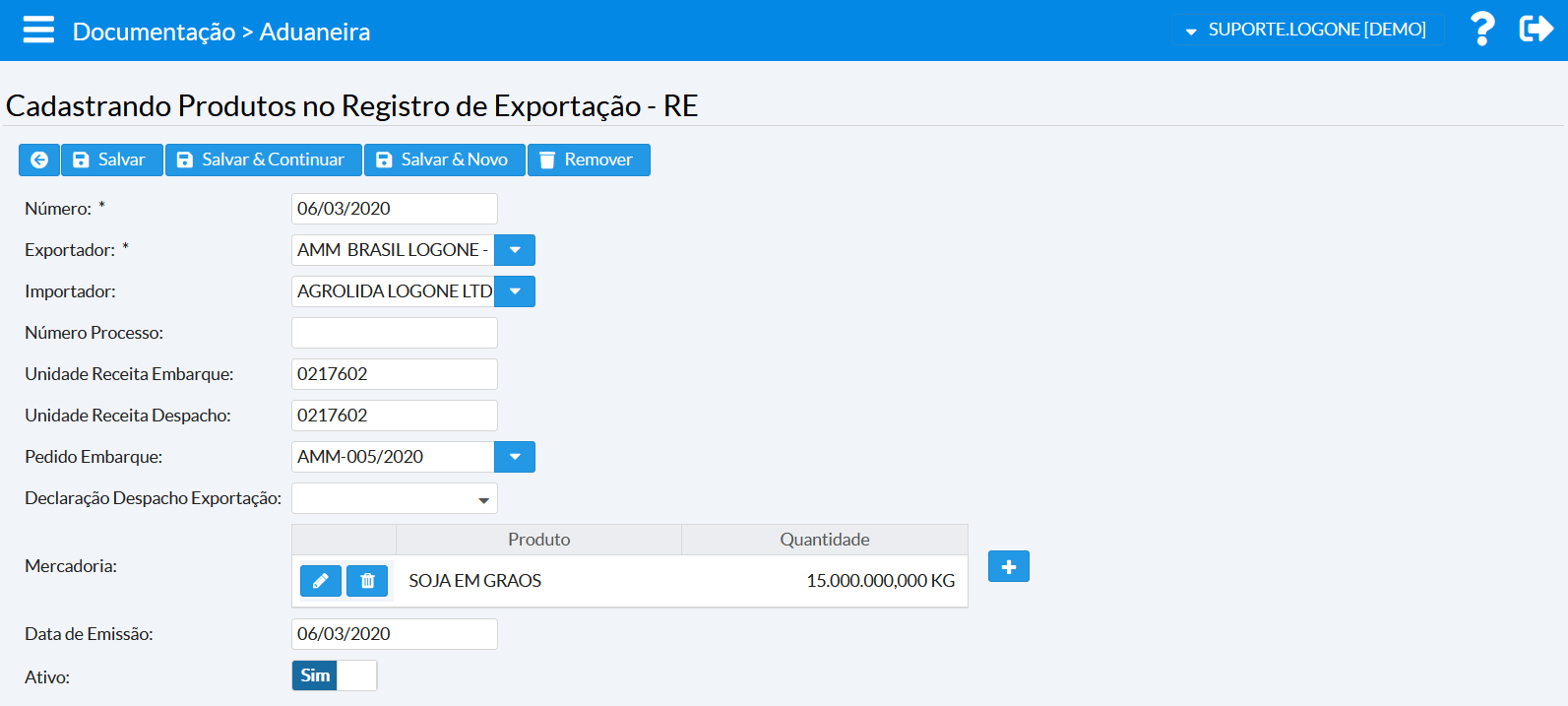Para controle de registros referente ao processo de importação é necessário que o parâmetro importacao.unidade.operacional seja configurado como true. Indica que a unidade operacional tem importação de carga.