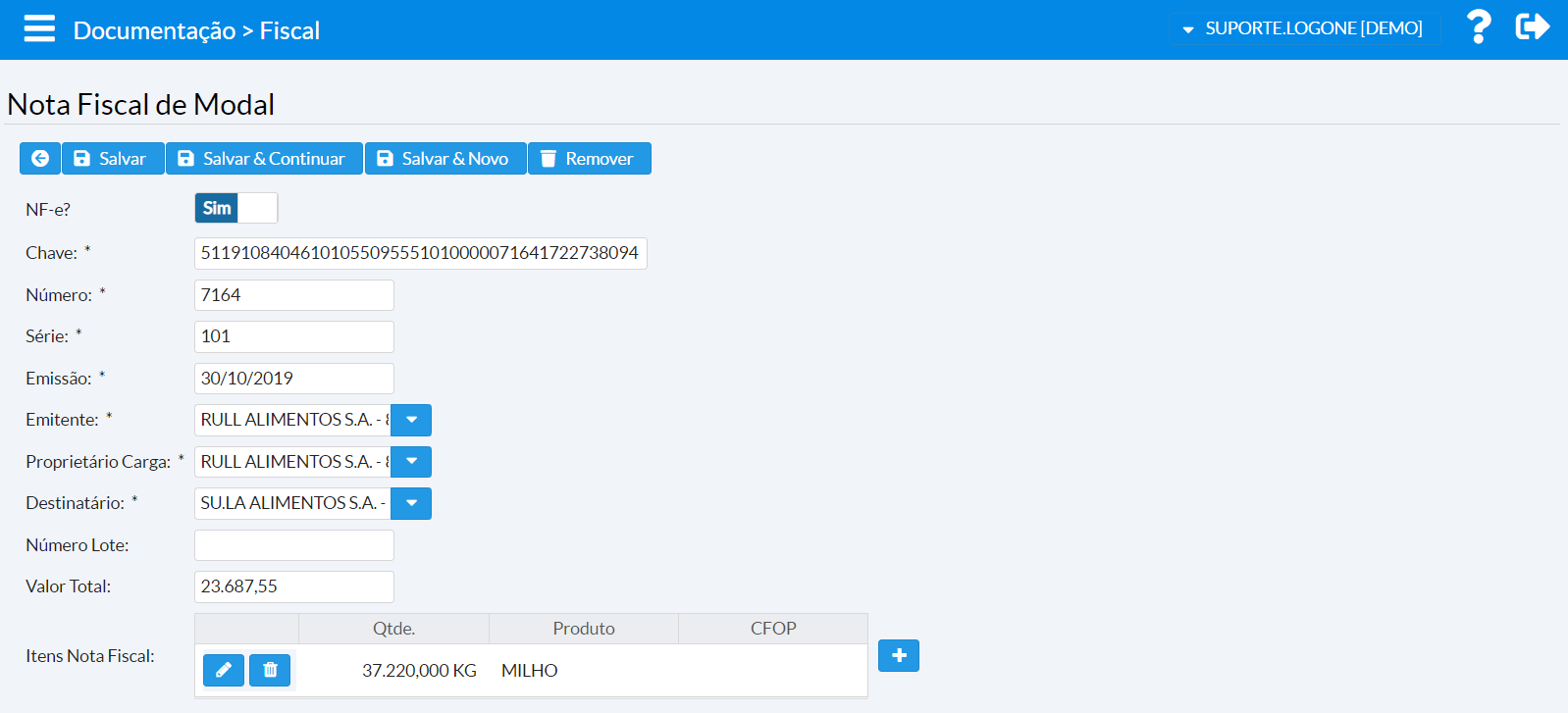 | Documentação > Fiscal > Nota Fiscal de Modal |