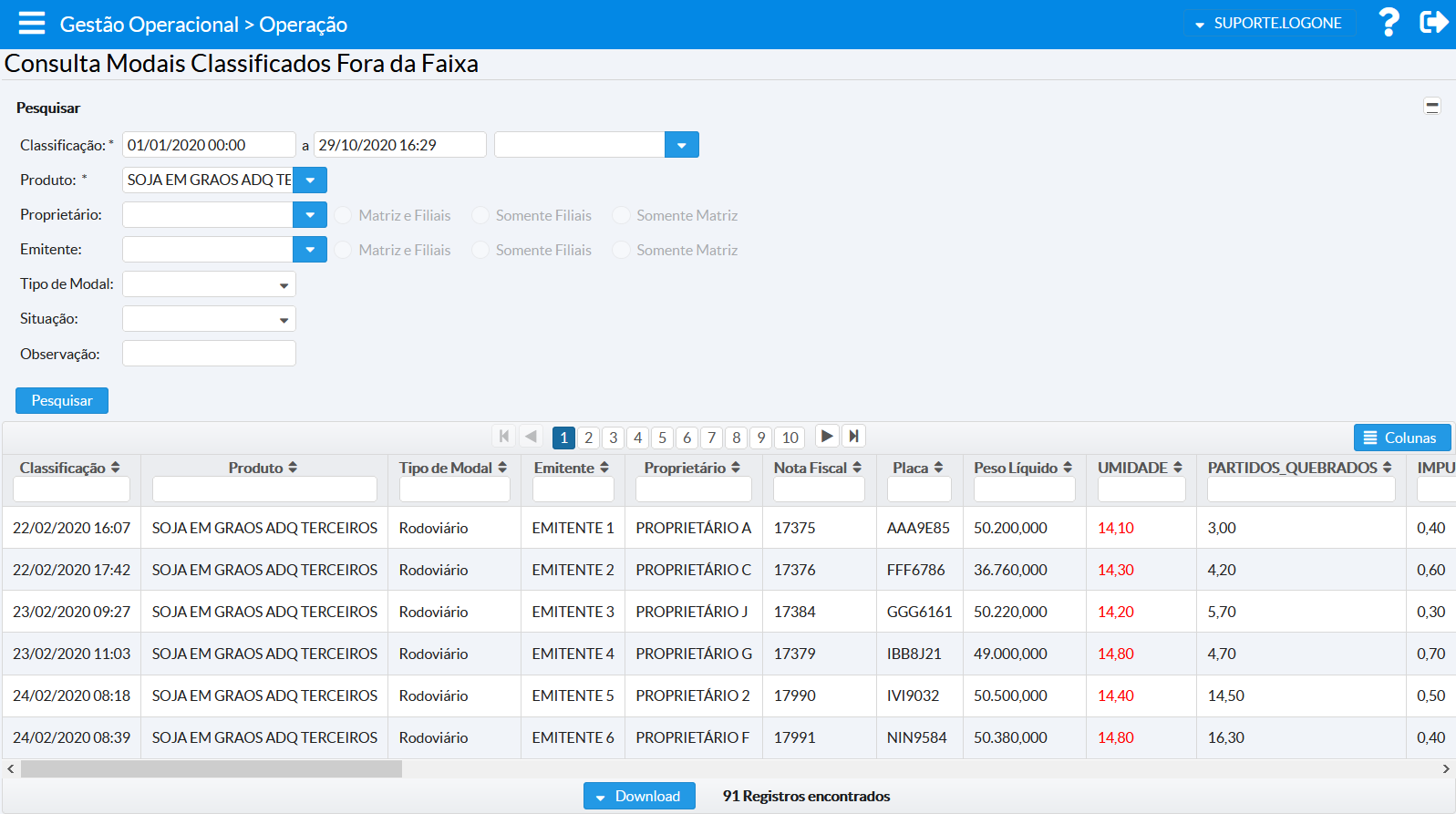 | Gestão Operacional > Operação > Consulta de Modais com Peso Divergente |