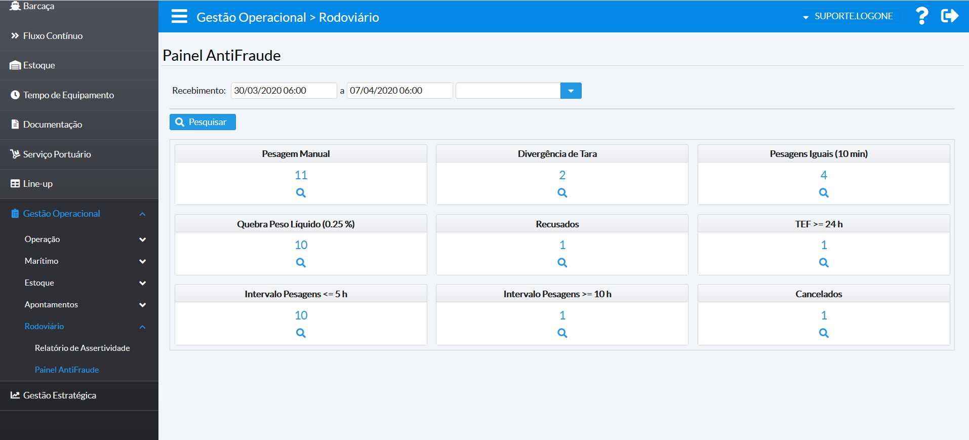 | Gestão Operacional > Marítimo > Operação por Período |