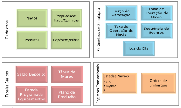 Nas tabelas existentes nesta etapa, deverão ser cadastrados os parâmetros que servirão de base para cálculos da simulação dos cenários Line-up. Algumas dessas tabelas exigem uma manutenção constante, tendo em vista que os dados podem sofrer alterações decorrentes até mesmo de fatores naturais.