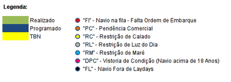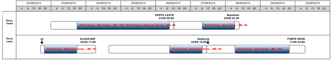 Através do botão Visualizar Linha do Tempo será exibida uma imagem gráfica representativa do Cenário Line-UP calculado, indicando as estadas contempladas nos respectivos berços, conforme figura abaixo: