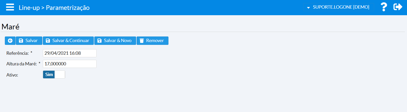 As informações das oscilações das marés são registradas nas chamadas Tábuas das Marés, normalmente divulgadas pela Marinha do país, ou demais agências de informação marítimas. Os dados deverão ser cadastrados somente se o sistema estiver parametrizado para considerá-los no cálculo das taxas de dispatch/demurrage.