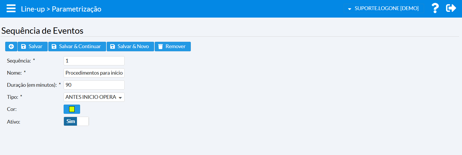 Eventos a serem considerados no cálculo do Cenário Line-Up. Ex.: Preparativos para Embarque, Arqueação Final.
