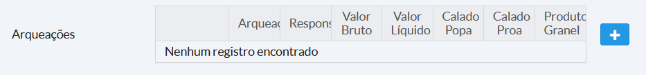 Localize a atracação desejada e no campo Arqueações inclua os dados através do botão Adicionar.