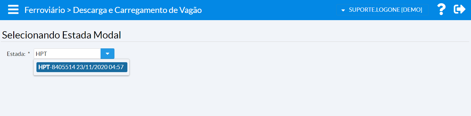 | Ferroviário > Descarga/Carregamento de Vagão > Consulta Estada |