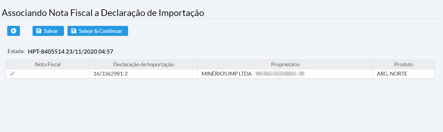 Essa tela tem por objetivo associar notas fiscais a declarações de importação associadas a estadas modais.